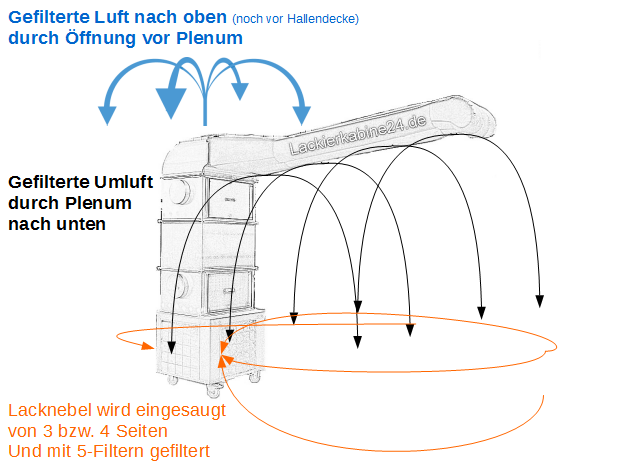 Neben Farbnebel saugt sie die beheizte Luft der Halle schnell nach außen oder arbeitet mit vielen Filtern in Umluft